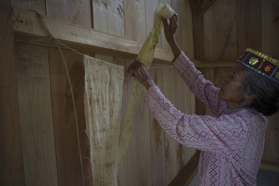 A villager dries Bea tree bark as a part of making traditional barkcloth at Hanggira village in Bada Valley, Posos district, Central Sulawesi, Indonesia, March 27, 2023. (Photo by Opan/Xinhua)
