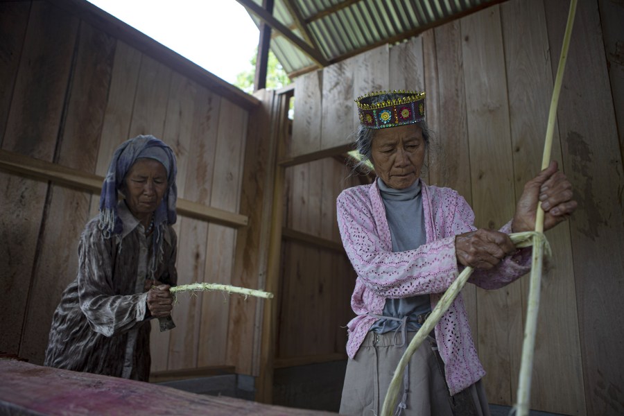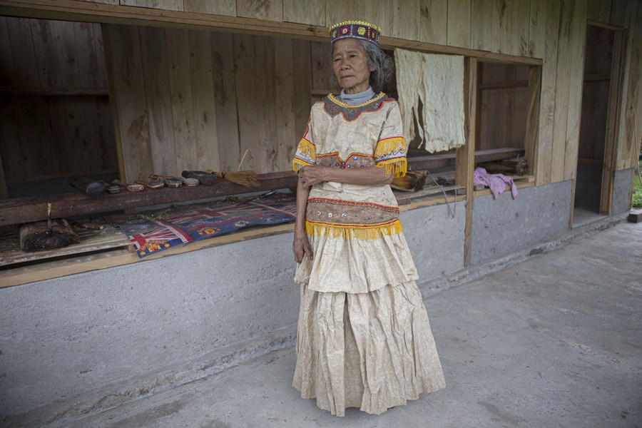 A villager wears a traditional costume made from traditional barkcloth at Hanggira village in Bada Valley, Posos district, Central Sulawesi, Indonesia, March 27, 2023. (Photo by Opan/Xinhua)