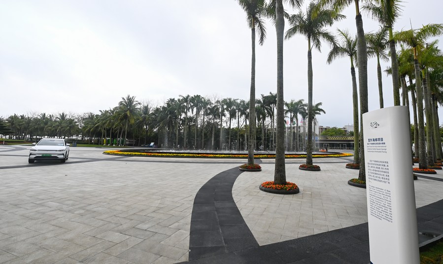 This photo taken on March 28, 2023 shows the permeable floor paving project of a zero-carbon demonstration zone in Boao, south China's Hainan Province, March 28, 2023. (Xinhua/Yang Guanyu)