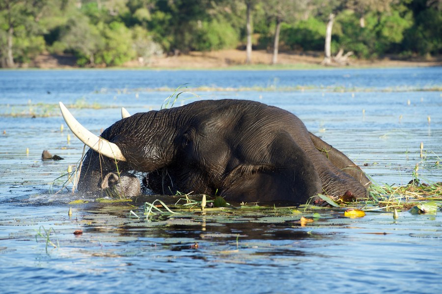 This photo taken on May 10, 2021, shows an elephant in the Chobe River in Kasane, Botswana. (Photo by Tshekiso Tebalo/Xinhua)