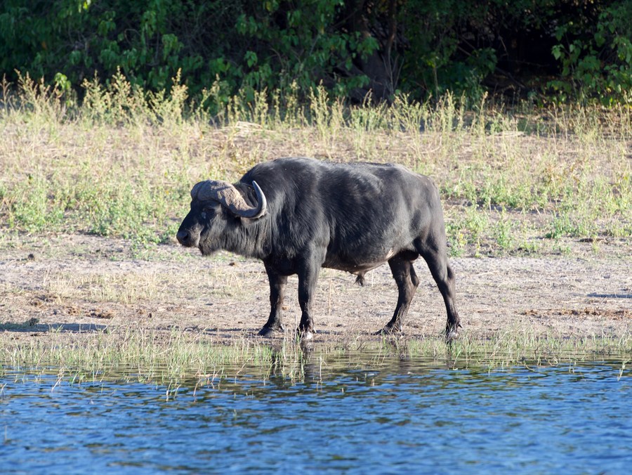 This photo taken on May 10, 2021, shows a buffalo along the Chobe River in Kasane, Botswana. (Photo by Tshekiso Tebalo/Xinhua)