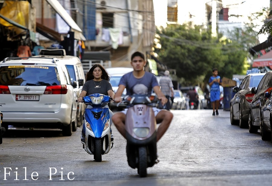 In the file photo, Lebanese young people are seen riding motorbikes amid a fuel crisis in Beirut, Lebanon, on Oct. 6, 2021. (Xinhua/Bilal Jawich)