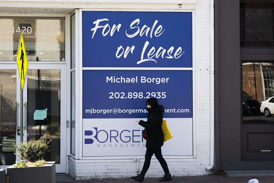 A woman walks past apartments for sale or lease in Washington, D.C., the United States, on March 14, 2023. (Photo by Aaron Schwartz/Xinhua)