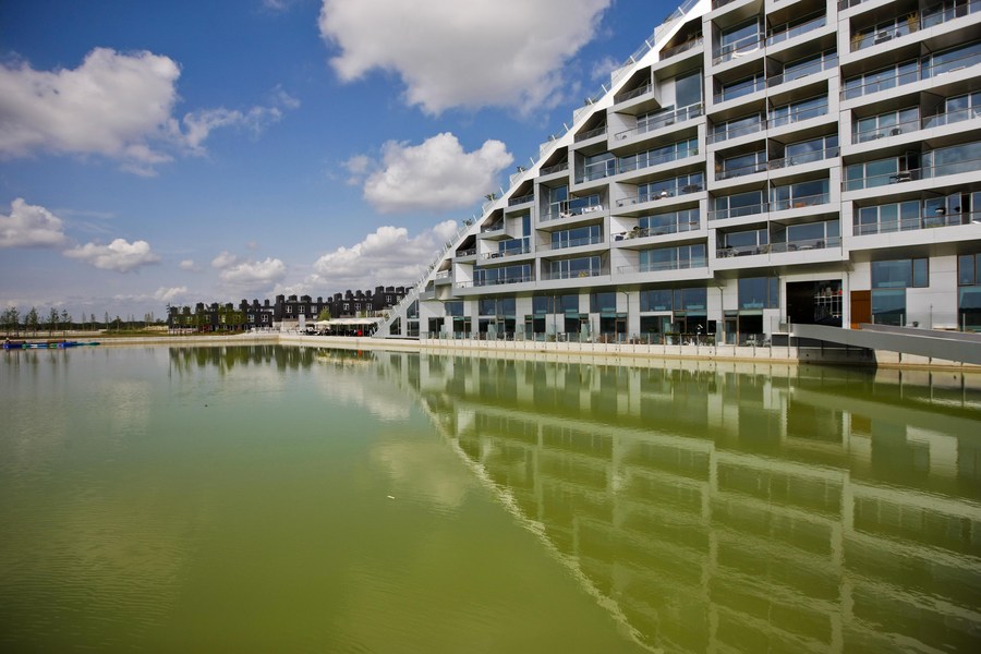 Photo taken on June 12, 2012 shows the "8 Tallet", a green-roofed eco-village in Copenhagen, capital of Denmark. (Xinhua/Zhou Lei)