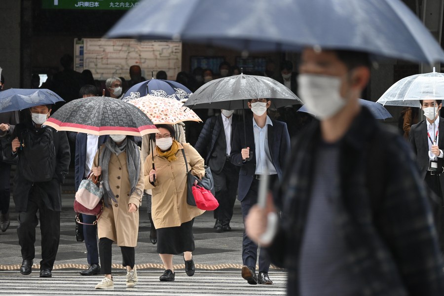 Pedestrians walk on the street in Tokyo, Japan on Nov. 15, 2022. (Photo by Sun Jialin/Xinhua)