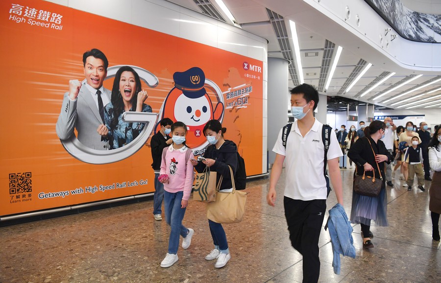 Passengers from the mainland leave the West Kowloon Station in south China's Hong Kong, April 1, 2023. (Xinhua/Chen Duo)