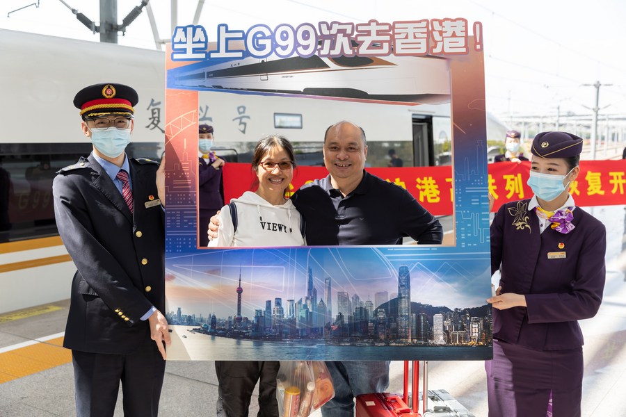 HONG KONG, April 2 (Xinhua) -- The long-haul services of the Express Rail Link (XRL) Hong Kong Section fully resumed on Saturday, connecting the financial hub with destinations outside the neighboring Guangdong province.