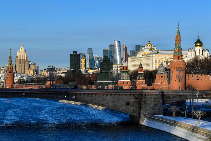 This photo taken on March 13, 2023 shows the scenery along the Moscow River in Moscow, Russia. (Xinhua/Cao Yang)