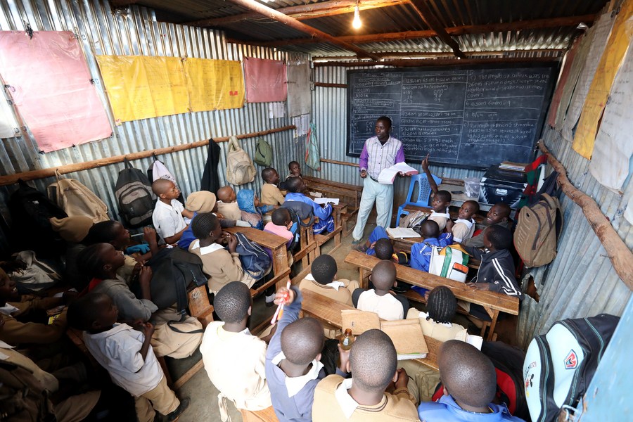 Students attend a class at a community school in Kibera slum, an informal settlement southwest of Nairobi, capital of Kenya, Oct. 16, 2019. (Xinhua/Wang Teng)