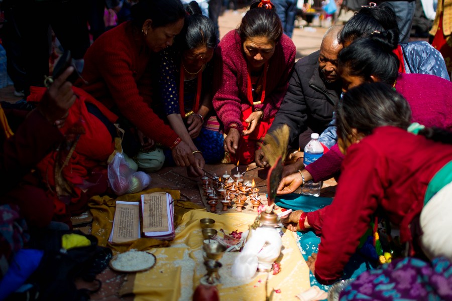 People from the Tamang community celebrate Temal Jatra at Boudhanath Stupa in Kathmandu, Nepal, on April 5, 2023. (Photo by Sulav Shrestha/Xinhua) ■