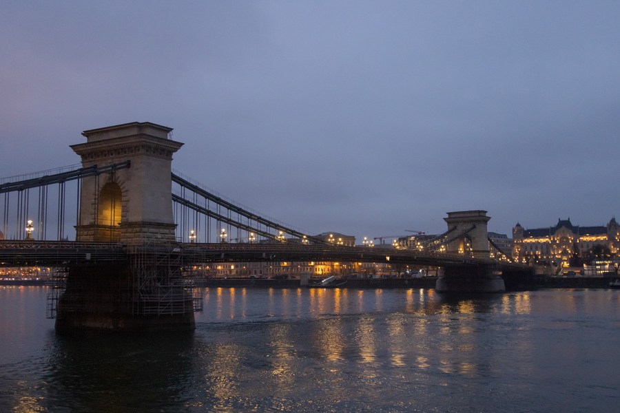 Photo taken on Dec. 16, 2022 shows the reopened Chain Bridge in Budapest, Hungary. (Photo by Attila Volgyi/Xinhua)