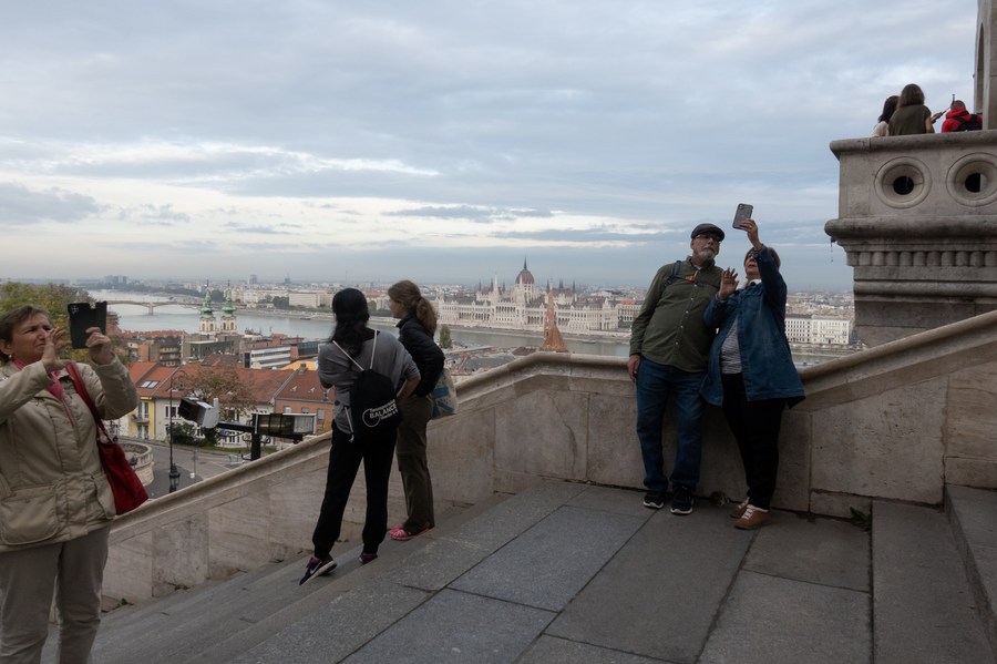 Tourists are seen at Fisherman's Bastion in Budapest, Hungary, on Oct. 26, 2022. (Photo by Attila Volgyi/Xinhua)