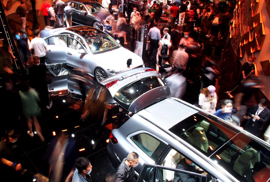 Visitors visit the 19th International Automobile Industry Exhibition (Auto Shanghai 2021) in Shanghai, east China, April 28, 2021. (Xinhua/Chen Fei)