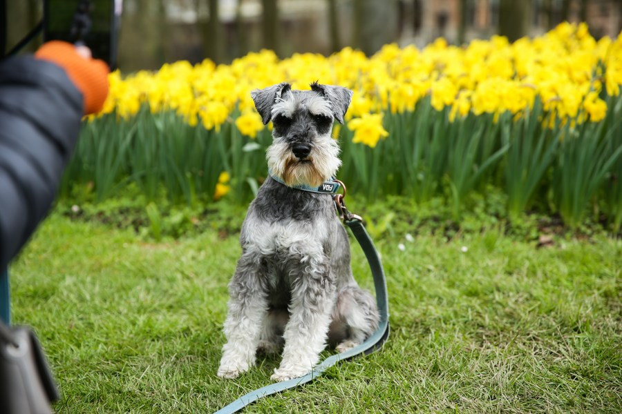 A visitor takes photos of a pet dog during the Floralia Brussels at Groot-Bijgaarden Castle in Dilbeek near Brussels, Belgium, April 7, 2023. Floralia Brussels 2023 is held from April 1 to May 4 this year, showcasing hundreds of varieties of flowers. (Xinhua/Zheng Huansong)