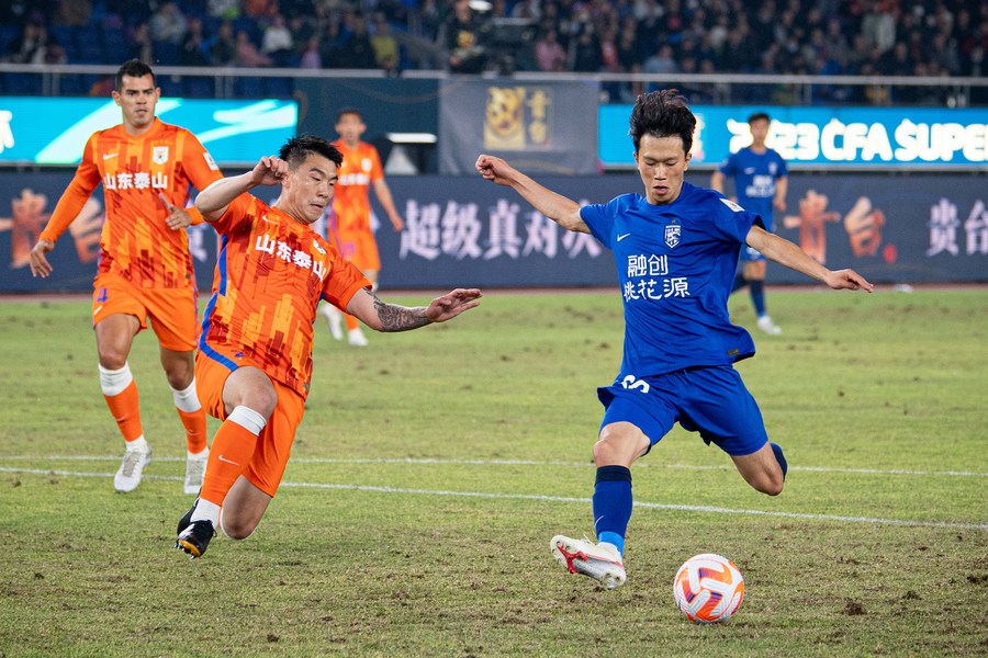 HANGZHOU, China, April 8 (Xinhua) -- Chinese Super League (CSL) champions Wuhan Three Towns defeated Chinese Football Association (CFA) Cup winners Shandong Taishan 2-0 to win their first CFA Super Cup title on Saturday.