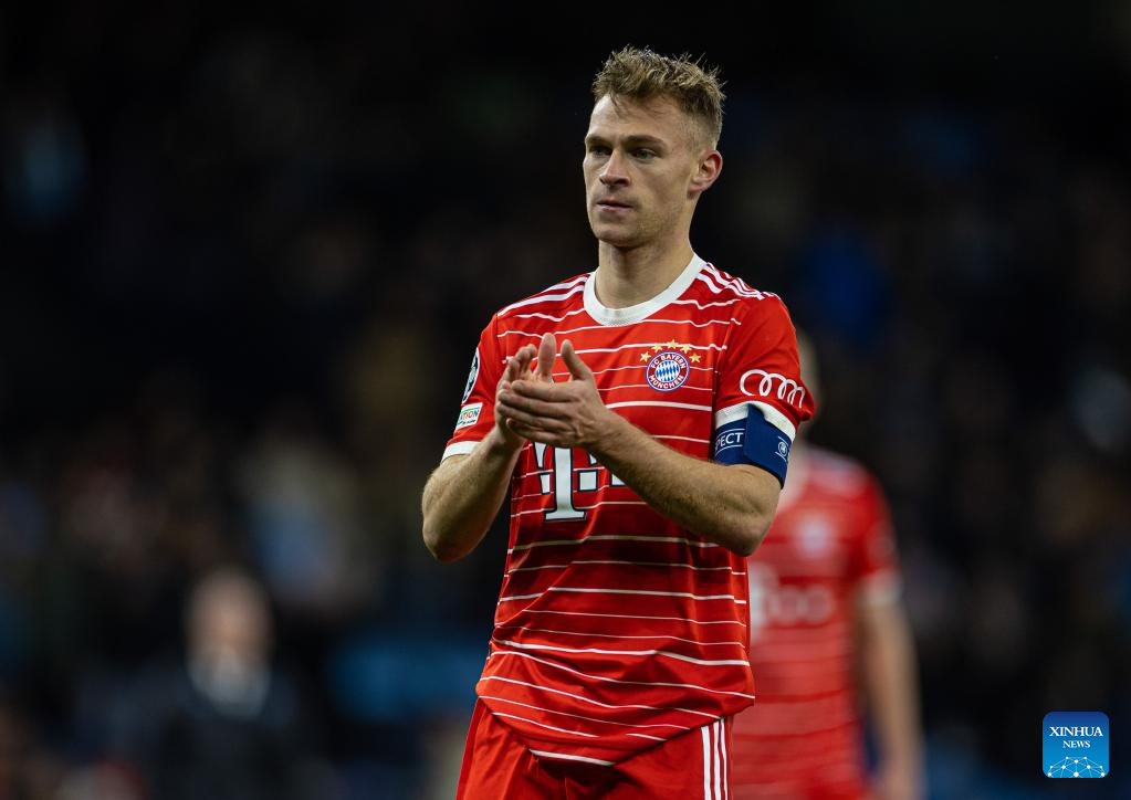 Bayern Munich's Joshua Kimmich looks dejected after the UEFA Champions League quarterfinal first Leg match between Manchester City and Bayern Munich in Manchester, Britain, on April 11, 2023. (Xinhua)