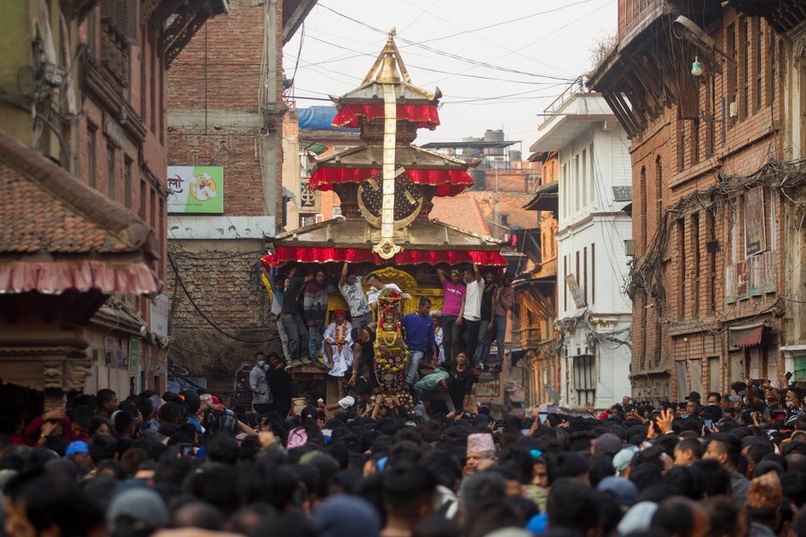 The nine-day-long festival sees various rituals and celebrations that are closely linked to ancient local beliefs, including pulling the chariot of Lord Bhairav on the first day.