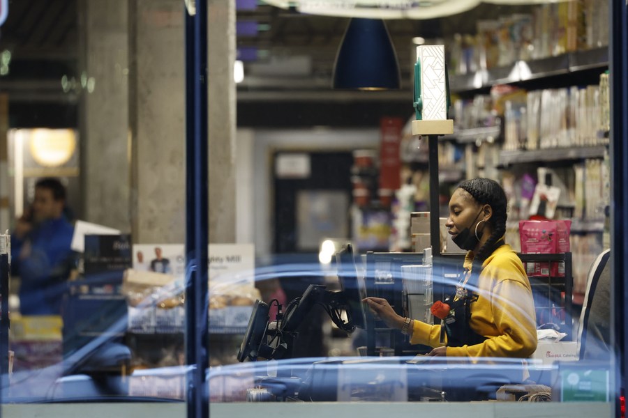 An employee works in a food market in Washington, D.C., the United States, May 6, 2022. (Photo by Ting Shen/Xinhua)