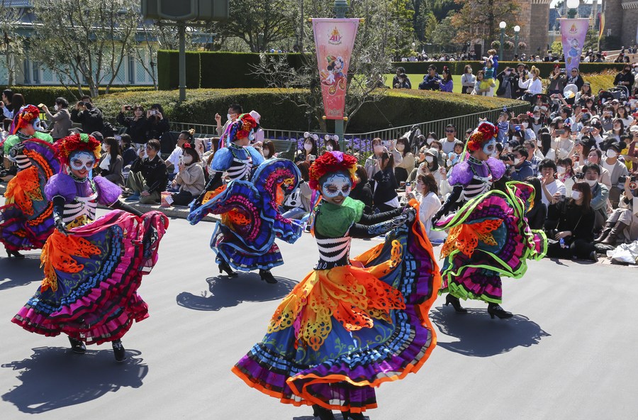 Performers take part in a parade at Tokyo Disneyland in Chiba Prefecture, Japan, April 10, 2023. (Xinhua/Qian Zheng)