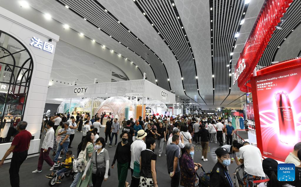 People visit the third China International Consumer Products Expo (CICPE) in Haikou, capital city of south China's Hainan Province, on April 14, 2023. The expo opened to the public on Friday. (Xinhua/Fan Yuqing)