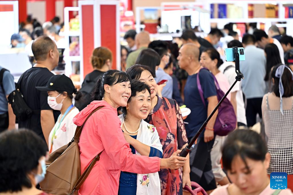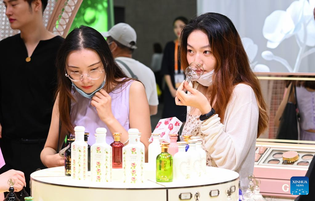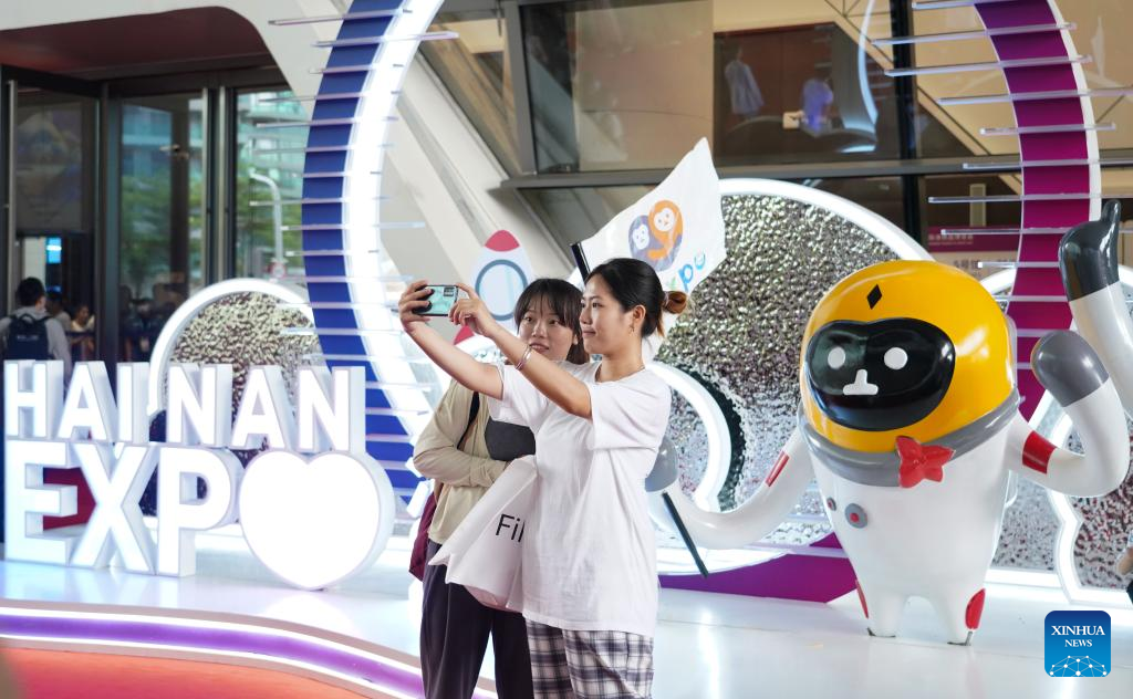 Visitors take a selfie at the third China International Consumer Products Expo (CICPE) in Haikou, capital city of south China's Hainan Province, on April 14, 2023. The expo opened to the public on Friday. (Xinhua/Fan Yuqing)