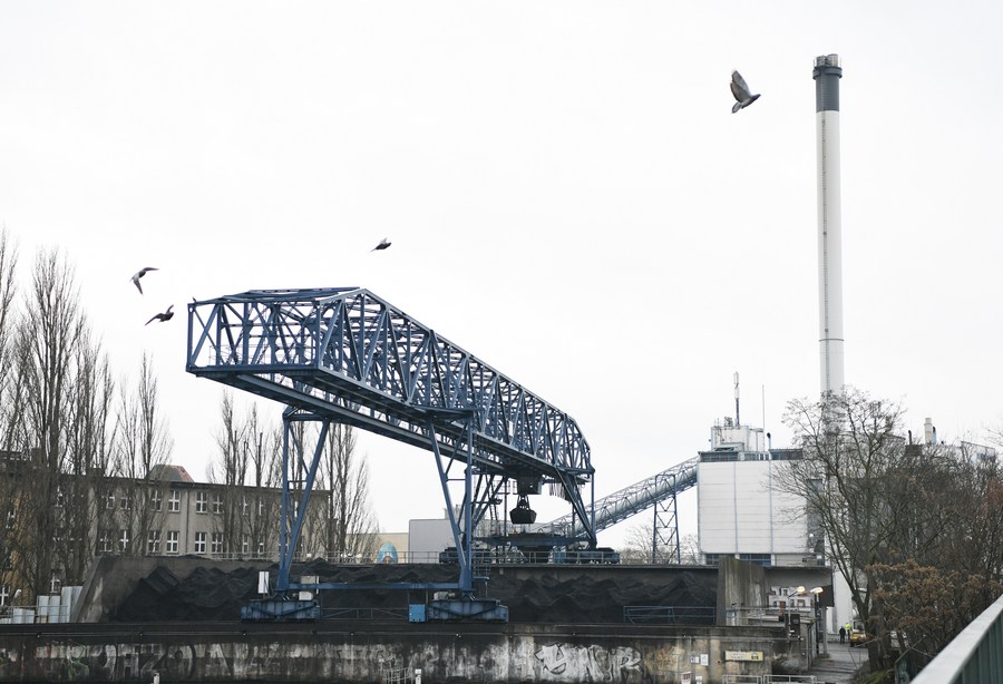 Loading equipment operates at a coal yard of a thermal power plant in Berlin, Germany, Jan. 9, 2023. (Xinhua/Ren Pengfei)