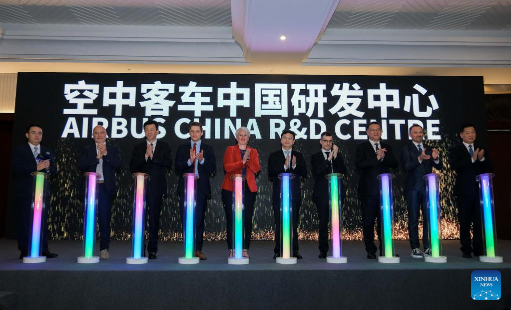 This photo taken on April 14, 2023 shows the inauguration ceremony of an Airbus research center in Suzhou, east China's Jiangsu Province. (Xinhua)