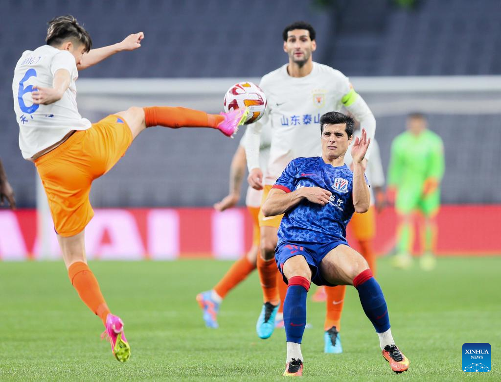 SHANGHAI, April 16 (Xinhua) -- China international Wu Xi scored a lucky goal as Shanghai Shenhua beat Shandong Taishan 1-0 in the 2023 Chinese Super League (CSL) season here on Sunday.