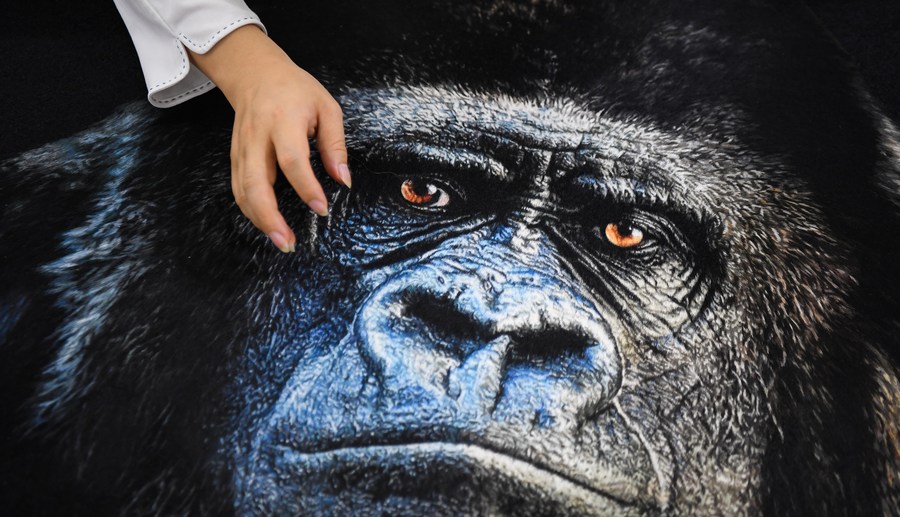 Wang Xinyuan makes a piece of Guangzhou embroidery artwork about gorilla at his studio in Liwan District of Guangzhou, south China's Guangdong Province, April 4, 2023. Cantonese embroidery is one of the four famous embroideries in China. Guangzhou embroidery, part of Cantonese embroidery, dates back to the Tang Dynasty (618-907) and has a history of more than 1,000 years. Wang Xinyuan, a representative inheritor of Guangzhou embroidery, has been engaged in the walk for over 20 years. For him, passing on Guangzhou embroidery needs to combine modern concepts with tradition, "It's only innovation that gives life to the traditional art," Wang said. (Xinhua/Deng Hua)