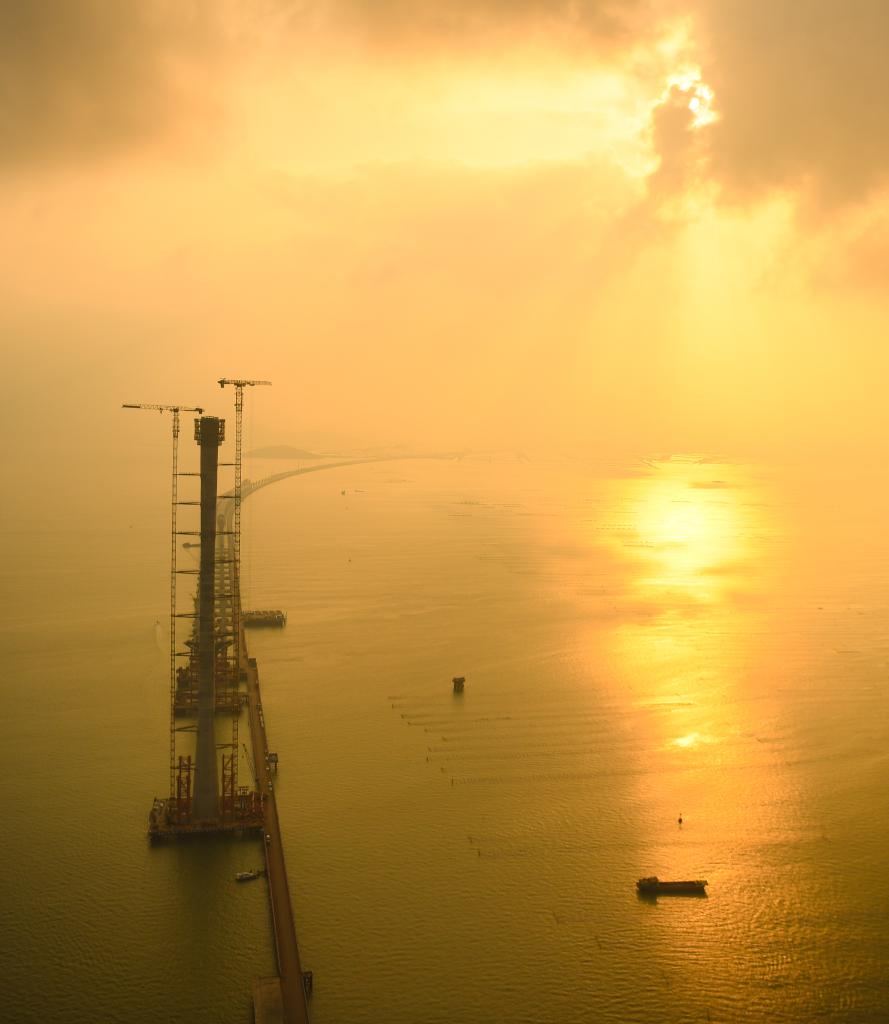 This photo taken on April 17, 2023 shows a view of a main tower of Huangmaohai Bridge in south China's Guangdong Province. The middle tower of Huangmaohai Bridge was successfully capped on Tuesday. As the main project of the Huangmaohai cross-sea passage, Huangmaohai Bridge has a total length of 2,200 meters. Once completed and open to traffic, the bridge will serve as one of the cross-sea and cross-river corridors in the Guangdong-Hong Kong-Macao Greater Bay Area. (Xinhua/Deng Hua)