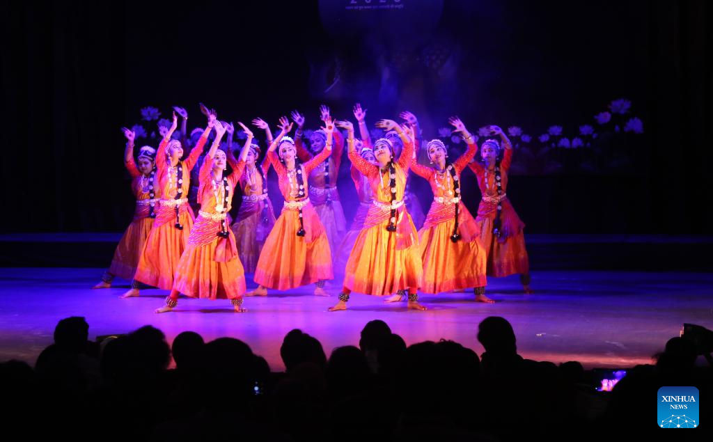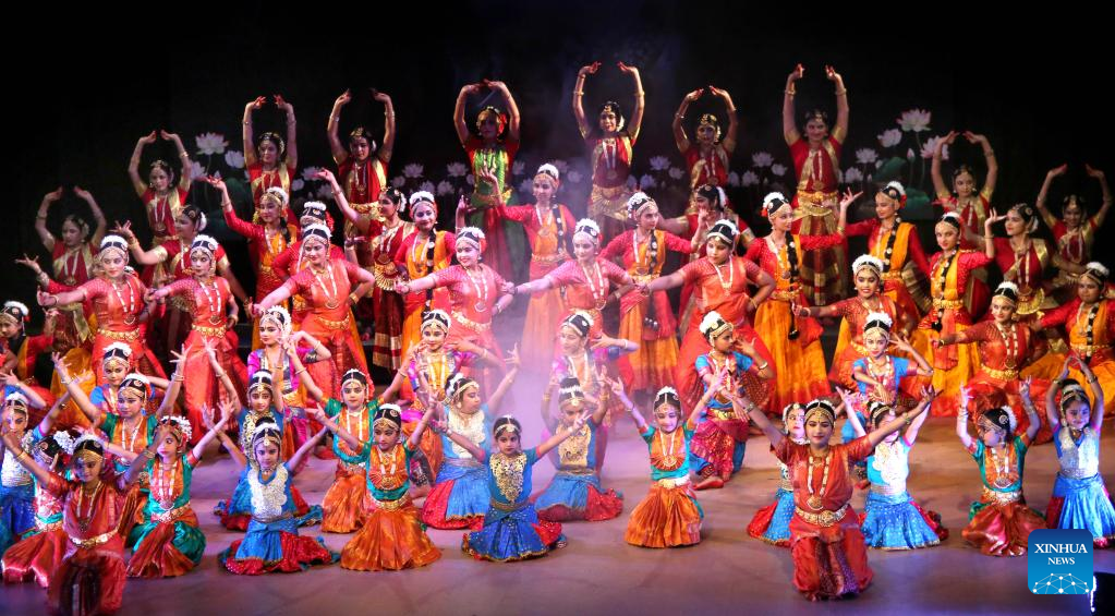 Artists perform Indian classical Bharatnatyam dance during a cultural event in Bhopal, capital of India's Madhya Pradesh state, April 18, 2023. (Str/Xinhua)