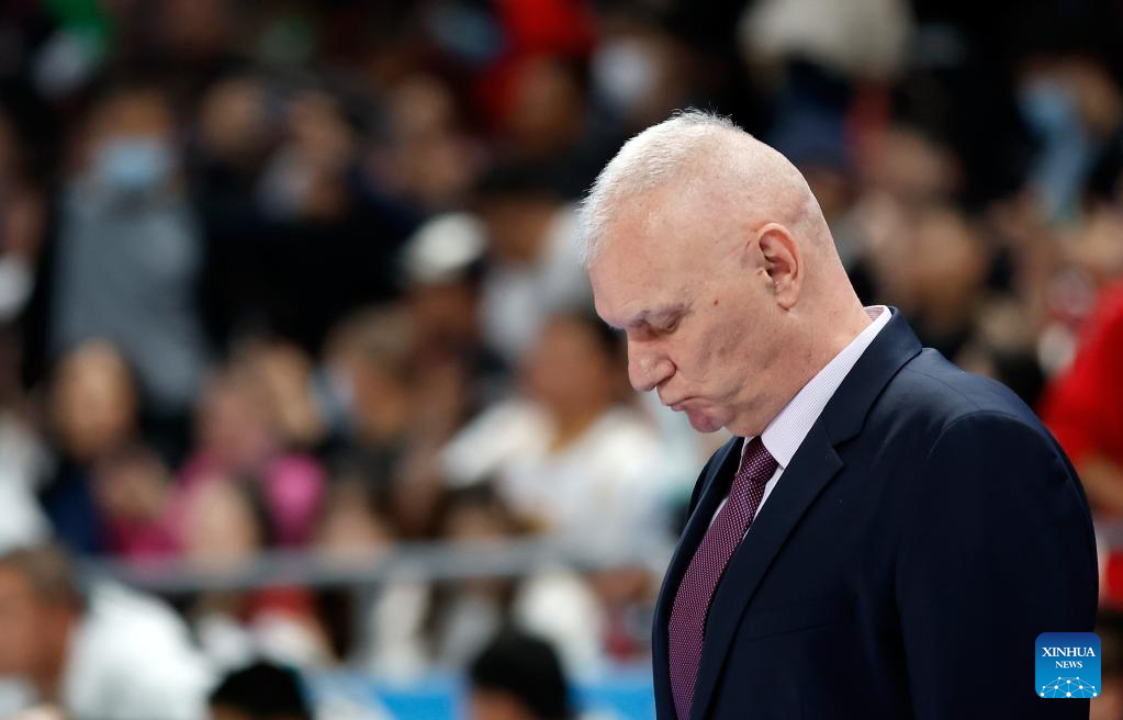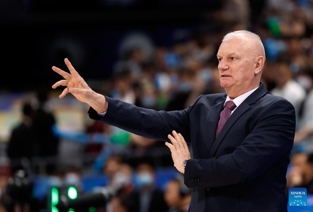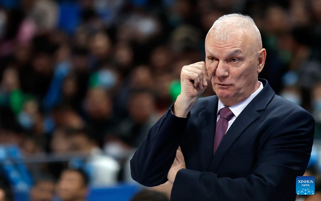 Ernest Raden, coach of Beijing Ducks, gestures during the Game 2 of the best-of-three quarterfinals between Beijing Ducks and the Liaoning Flying Leopards at the playoffs of 2022-2023 season of the Chinese Basketball Association (CBA) league in Beijing, capital of China, April 20, 2023. (Xinhua/Wang Lili)