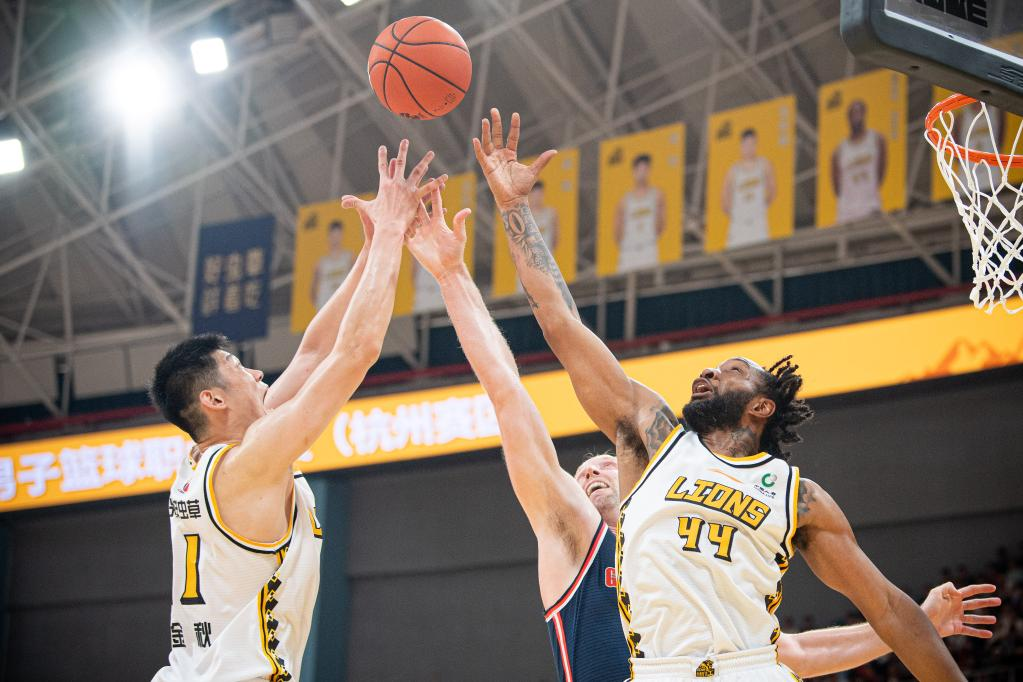 Marshon Brooks (L) of Guangdong Southern Tigers competes during the Game 2 of the best-of-three quarterfinals between Zhejiang Lions and Guangdong Southern Tigers at the playoffs of 2022-2023 season of the Chinese Basketball Association (CBA) league in Hangzhou, east China's Zhejiang Province, April 20, 2023. (Xinhua/Jiang Han)