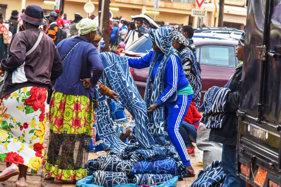 Vendors sell Ndop fabric products at a market in Bafoussam, Cameroon, April 11, 2023. (Xinhua/Kepseu)
