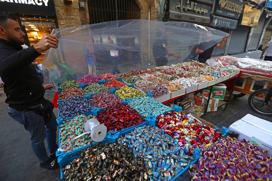 BEIRUT, April 19 (Xinhua) -- As Eid al-Fitr which ends the Muslim fasting month of Ramadan is approaching, shopping for various sweets and desserts for the holiday brings a bite of sweetness to the crisis-hit Lebanese.