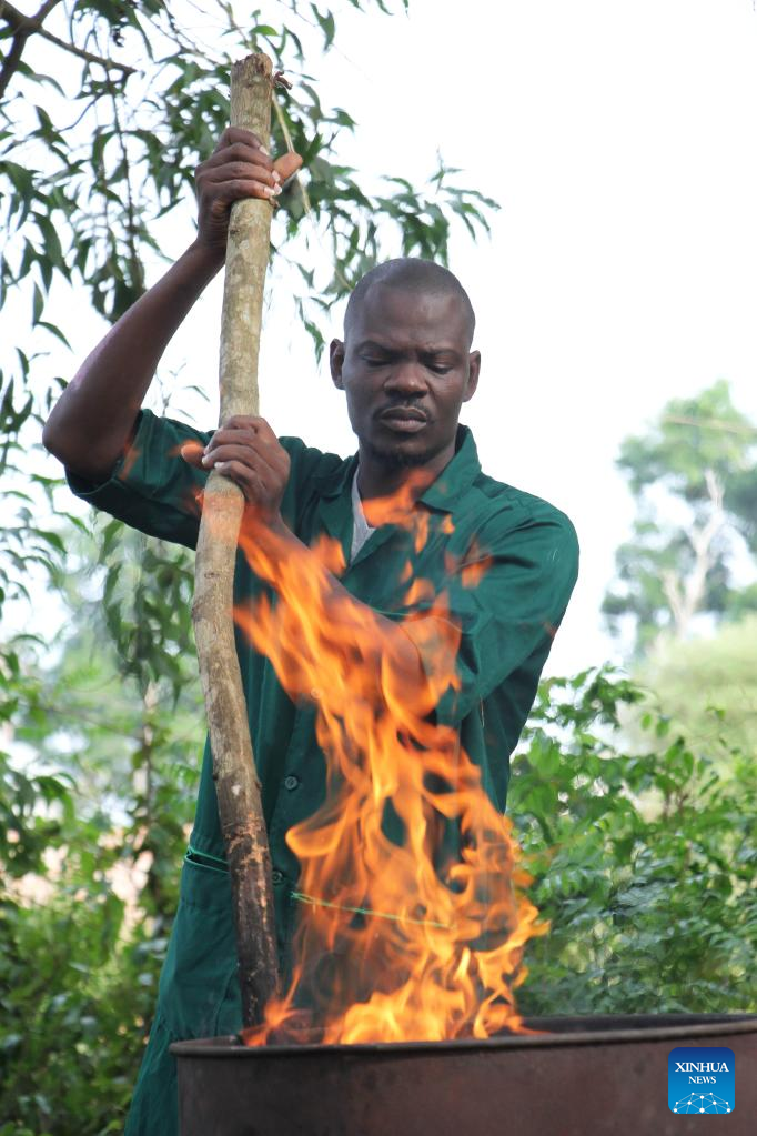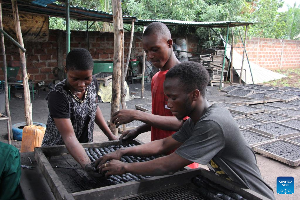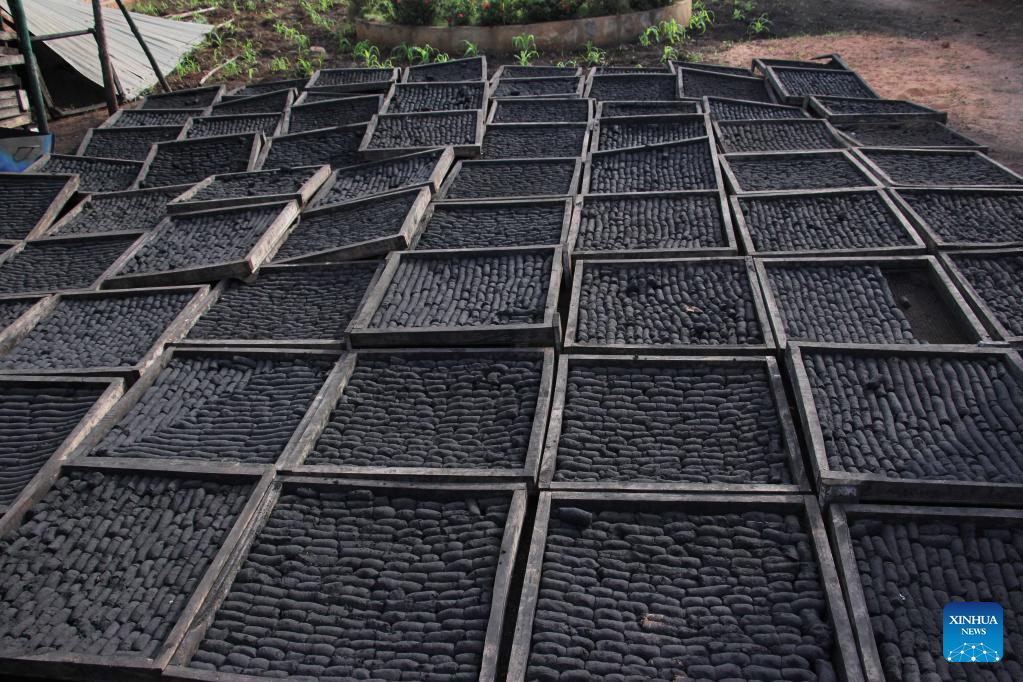 Ecological charcoal is emerging as an effective solution to fight against deforestation in the West African country of Benin, said Roland Adjovi, an entrepreneur in Abomey-Calavi, a city in southern Benin. (Photo by Seraphin Zounyekpe/Xinhua)