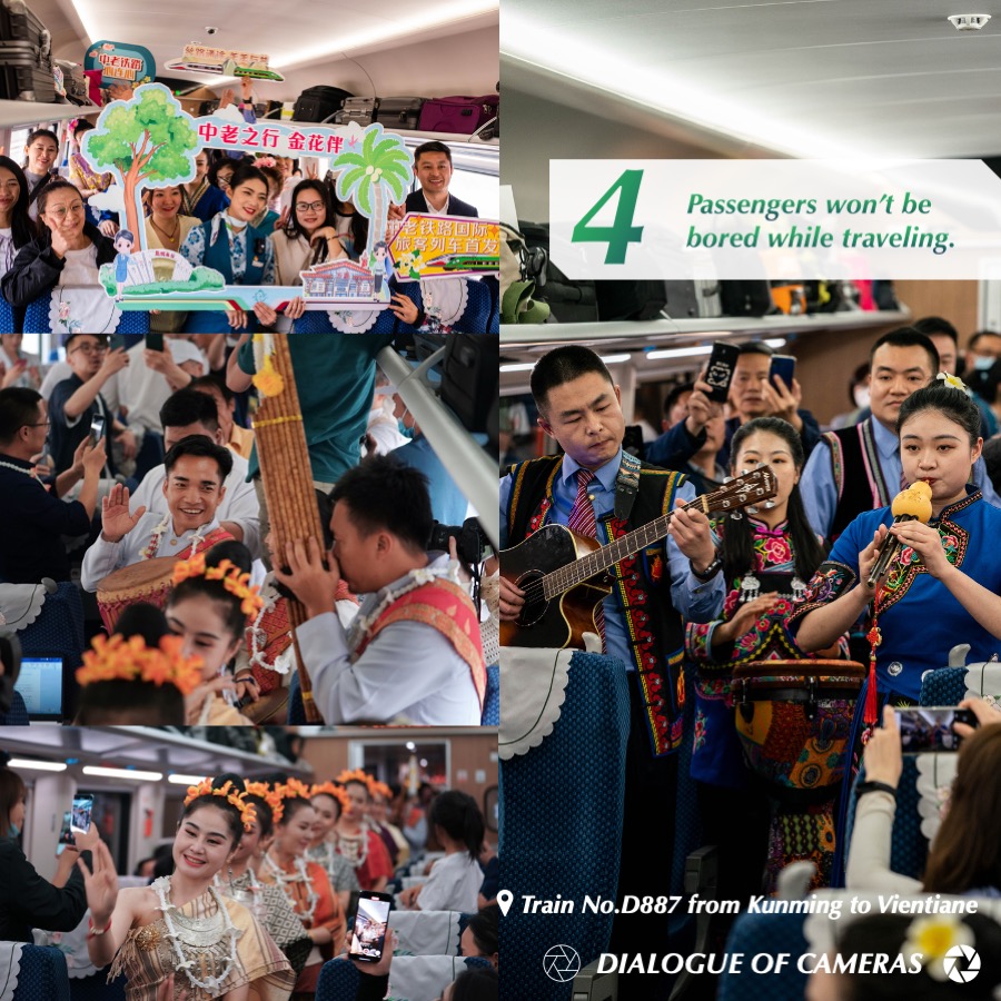 On the day the train services were launched, traditional ethnic dance performances were held by railway staff members at both Kunming South Railway Station and Vientiane Station for the passengers.