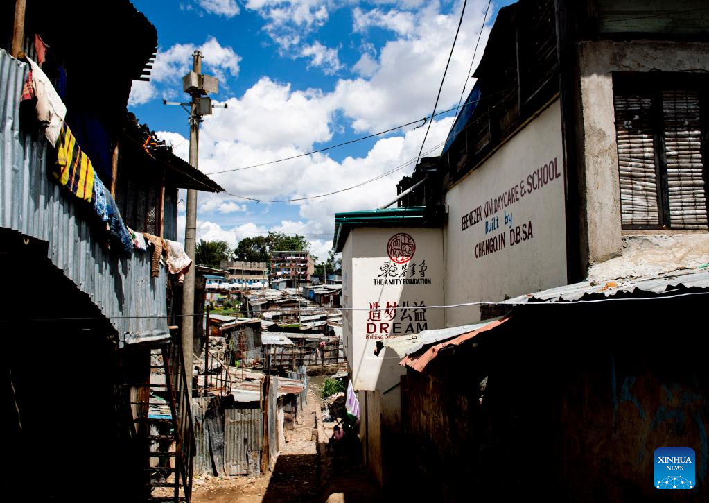 This photo taken on April 19, 2023 shows the exterior view of Dream Building Service Association (DBSA) School in Mathare Valley of Nairobi, Kenya, April 19, 2023.