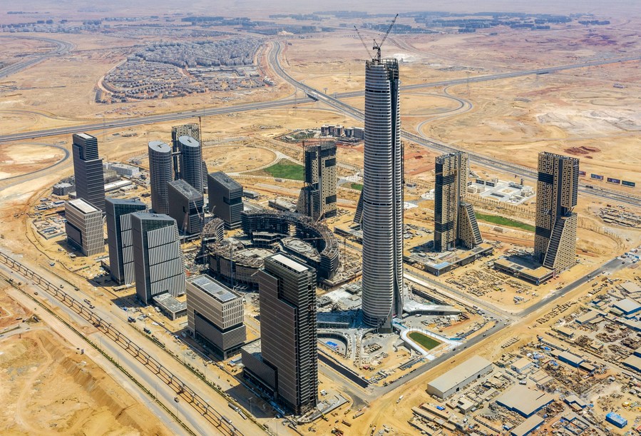 Aerial photo taken on July 19, 2022 shows the Central Business District (CBD) project in Egypt's new administrative capital, which was constructed by China State Construction Engineering Corporation (CSCEC), in Cairo, Egypt. (CSCEC Egypt/Handout via Xinhua)
