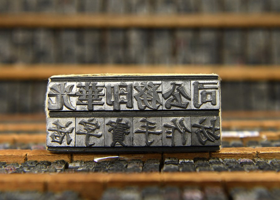 Photo taken on March 30, 2023 shows a lead typeface at Kwong Wah Printing in Hong Kong, China. (Xinhua/Chen Duo)