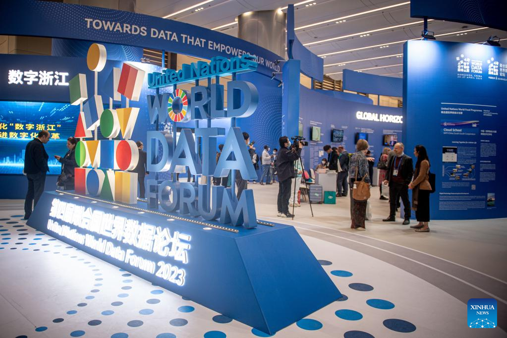 This photo taken on April 24, 2023 shows a view of the 4th United Nations World Data Forum in Hangzhou, capital of east China's Zhejiang Province. The forum is scheduled from April 24 to 27. (Xinhua/Jiang Han)