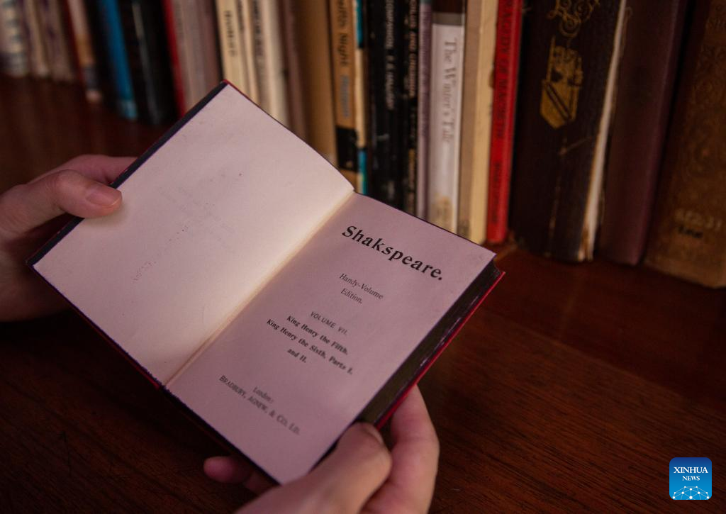 This photo taken on April 24, 2023 shows a book displayed at the Shakespeare Room inside the State Library of New South Wales in Sydney, Australia. As the oldest library in Australia, the State Library of New South Wales (NSW) on Monday started opening Shakespeare Room seven days a week to the public for the first time in its history.