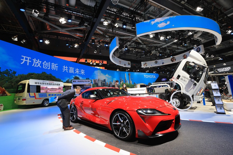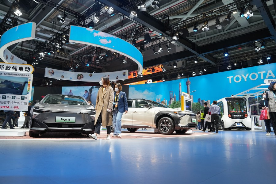 At the Shanghai International Automobile Industry Exhibition that kicked off on April 18, Japanese automaker Toyota unveiled two bZ series models to be launched in the Chinese market next year. Its hydrogen engine models also appeared on display during the auto show.