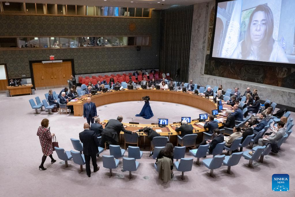 The UN Security Council holds a meeting on Haiti at the UN headquarters in New York, on April 26, 2023. The top UN envoy for Haiti on Wednesday called for the deployment of an international specialized force in Haiti to quell armed gang violence. (Manuel Elias/UN Photo/Handout via Xinhua)