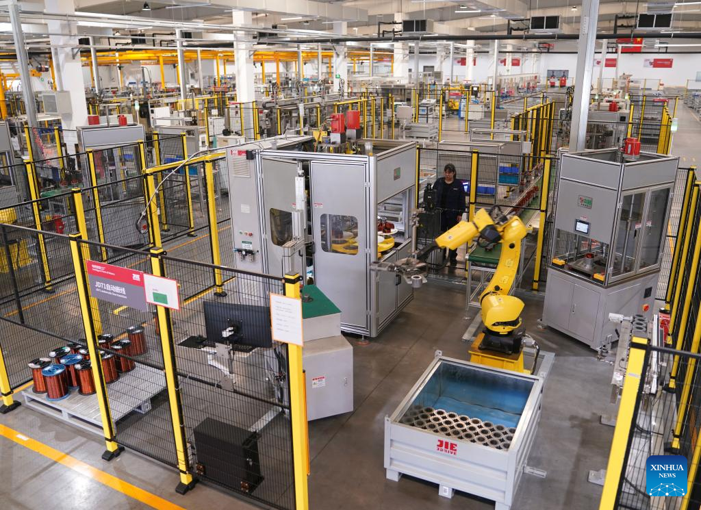 This photo taken on April 27, 2023 shows an intelligent plant of JIE Drive in Xiaoshan District of Hangzhou, east China's Zhejiang Province.