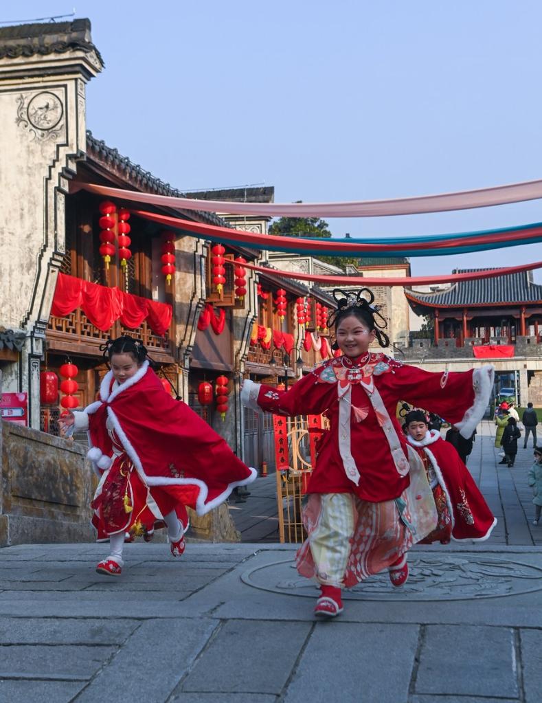 Children have fun at a cultural block in Xindeng Town of Fuyang District of Hangzhou City, east China's Zhejiang Province, Jan. 26, 2023. (Xinhua/Xu Yu)