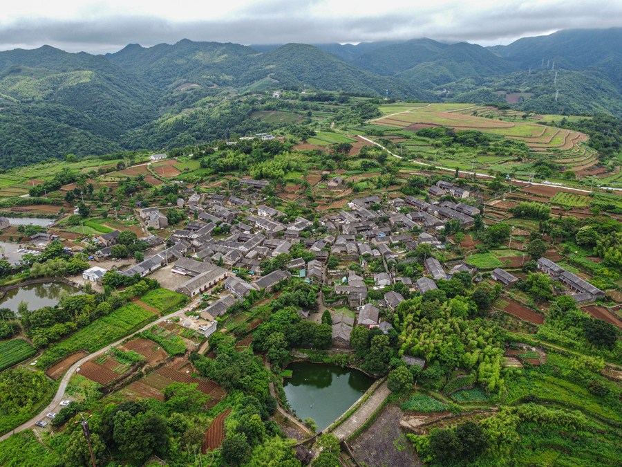 This aerial photo taken on June 10, 2021 shows the view of the Xumin Village in Ninghai County, east China's Zhejiang Province. (Xinhua/Jiang Han)