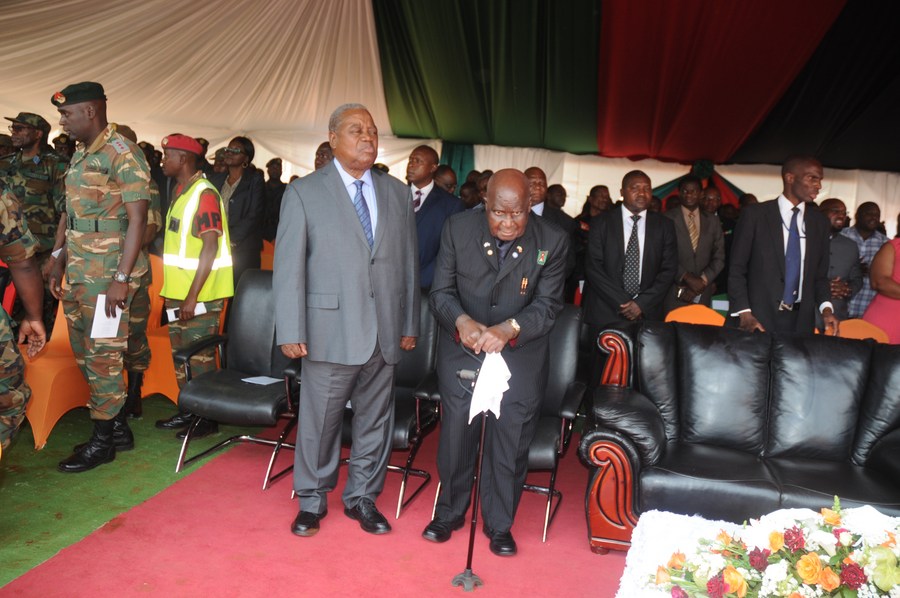 The file photo shows Former Zambian Presidents Rupiah Bwezani Banda (front L) and Kenneth Kaunda attending the National Day of Prayer in Lusaka, the capital of Zambia, on Oct. 19, 2018. (Xinhua/Hamunali Moidah)