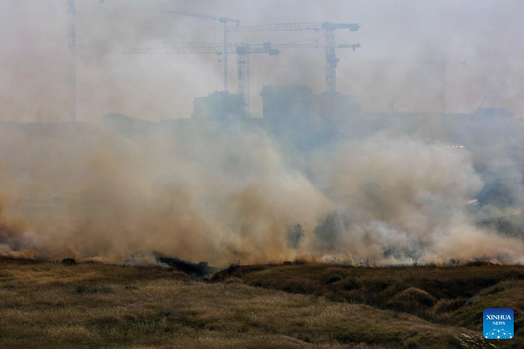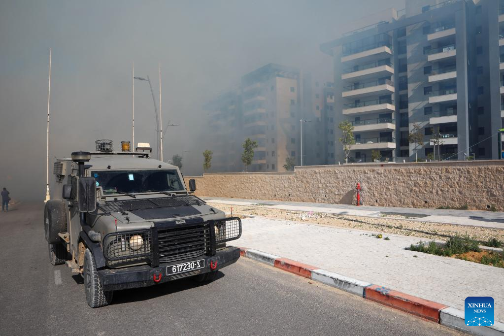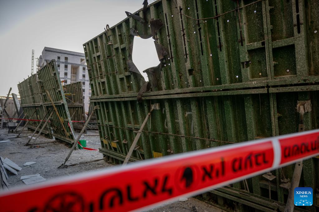 This photo taken on May 2, 2023 shows a construction site after it was attacked by a rocket in southern Israeli town of Sderot. Israeli media reported that at least nine people, including a Chinese worker, were injured after one of the rockets targeted a building in the southern Israeli town of Sderot. One of the injuries was in critical condition. (JINI via Xinhua)