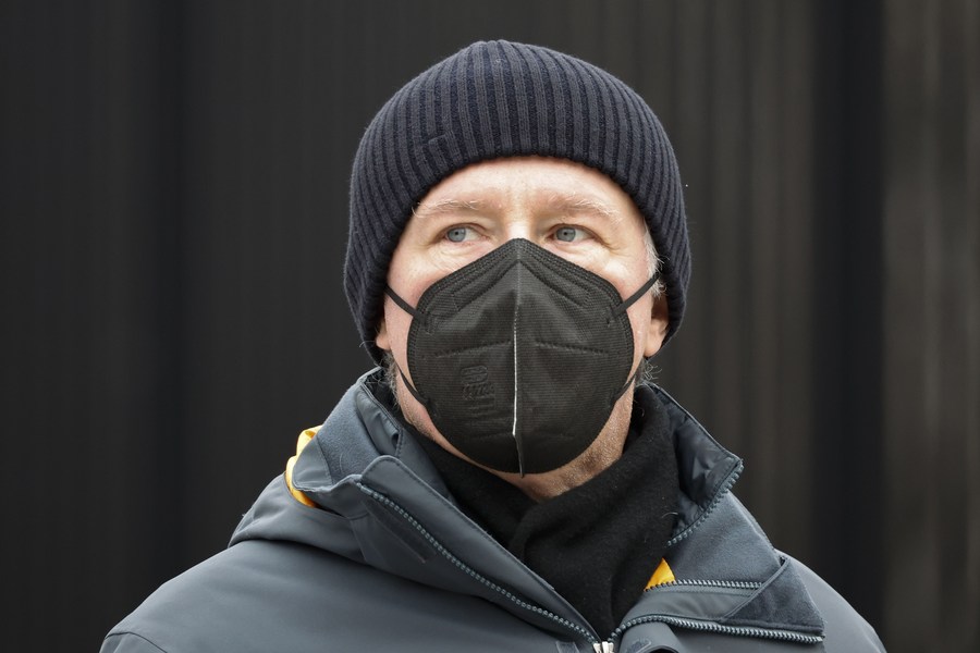 A man wearing a face mask is seen on a street in Washington, D.C., the United States, on Dec. 16, 2022. (Photo by Ting Shen/Xinhua)